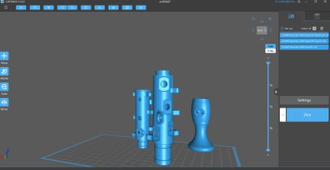 Please note that you do not need to support the toneholes and there should be no supports on the inside of the bore. I have calculated that the resin will shrink by a small amount and I have adjusted the bore to take this into account. There should be no need to sand or emery the bore to get the correct size. Please note that the files for the 2 sections for the body are Right and Left Handed. There is lettering on the top section of the body to denote this(LH or RH). The file for the foot joint is for a Right Hand instrument. This can be mirrored in the software to obtain the Left Hand model. The files for the keys are modelled for a Right Hand instrument. These can be mirrored in the software to obtain the Left Hand keys.