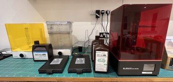 Printing This is my set up for 3D printing. A dedicated space is ideal but not necessary. Please be aware that resin printers can be a bit smelly! The isopropanal cleaner is quite strong.